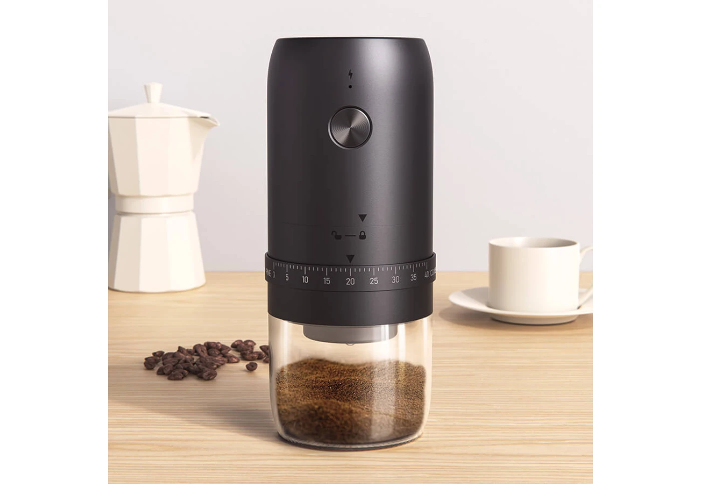 | Особенности | Литиевый аккумулятор Li-Ion 1800 mAh; входное напряжение: 5V USB кабель в комплекте Время полного заряда аккумулятора: 3,5 часа Объем резервуара для зерен кофе: 30 г Система регулировки степени помола: 40 настроек Щеточка для чистки |