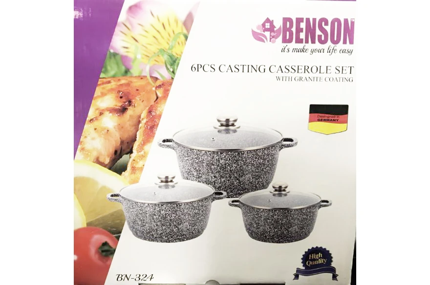 Набор кастрюль с гранитным антипригарным покрытием Benson BN-100324 (6 предметов)